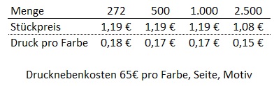 Preisliste Parkscheibe EUROPA mit Werbedruck Details