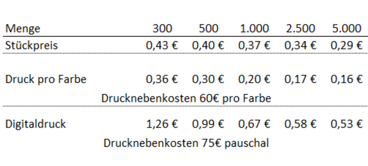 Preisliste Reifenprofiltiefenmesser mit Logo