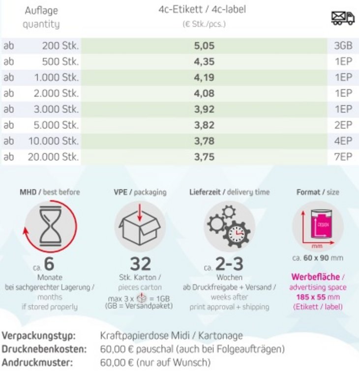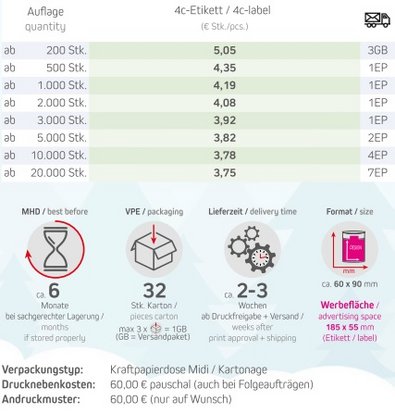 Haltbarkeit: ca. 6 Monate bei sachgerechter Lagerung