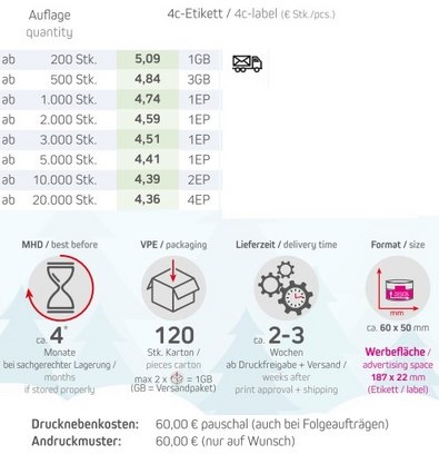 Preisliste Feuergebrannte Bio Mandeln ca. 40g mit Logo Details