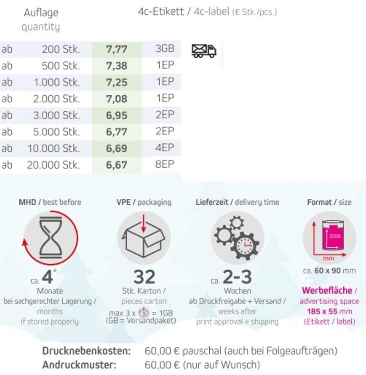 Preisliste Feuergebrannte Bio Mandeln ca. 80g Biologisch abbaubare Eco Pappdose mit Logo Details