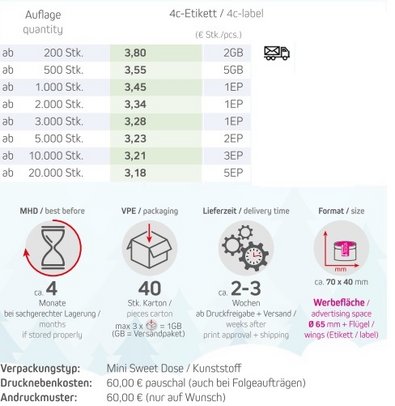 Werbefläche: Ø 65 mm + Flügel / Etikett