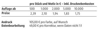 Metalldose, rechteckig mit geprägtem Scharnierdeckel, wiederbefüllbar, einzeln gesleevt mit roter Aufreißhilfe.Inhalt: tic tac FRESH MINT, ca.22gDosenfarben: weiß-matt, silber-matt, schwarz-mattFormat: ca. 59 x 46 x 18,5 mmVerpackung: 100 Stück / KartonLieferzeit: ca. 15 Arbeitstage nach Druckfreigabe, Express-Lieferung auf Anfrage!Mindestbestellmenge: 500 Stück