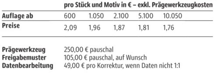 Preisliste XS-Prägedose Pulmoll Pastillen mit Logo Details