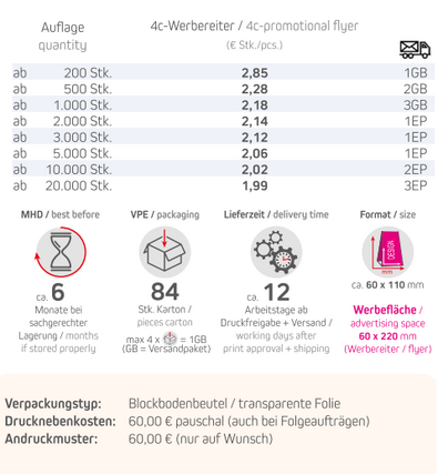 PreislisteKnusperkugel-Mix 20 g Express im Standbeutel mit Logo