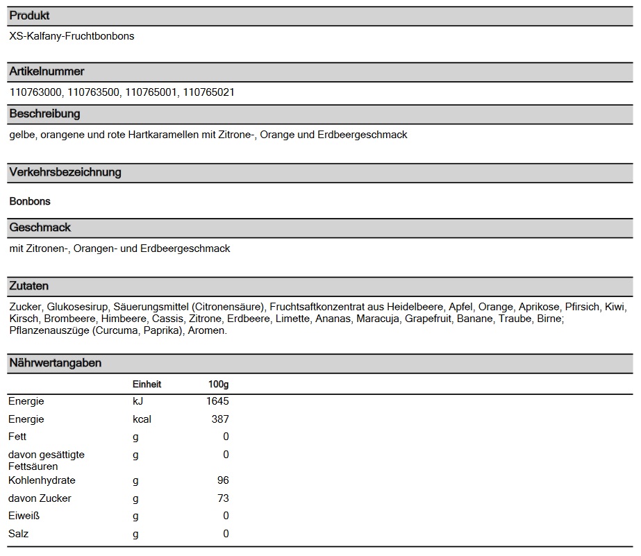 Preisliste Papier XS-Taschendose Fruchtbonbons mit Logo Details