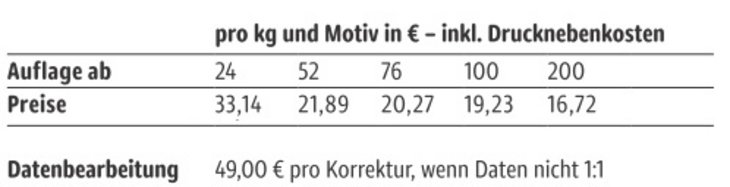 Preisliste Mini-Bonbons im Flowpack mit Logo