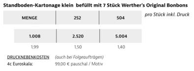 Preisliste Standbodenkartonage klein mit Werher´s Original mit Logo Details
