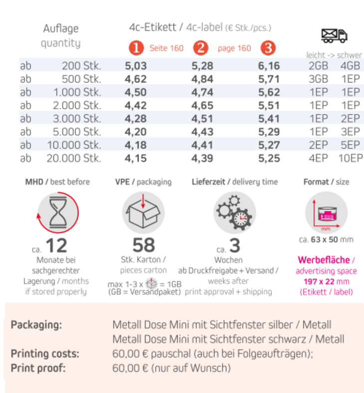Haltbarkeit: ca. 12 Monate bei sachgerechter Lagerung