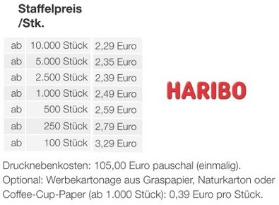 Preisliste 3D Präsent Haus mit Haribo Goldbären mit Logo