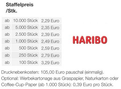 Preisliste 3D Präsent Bus mit Haribo Goldbären mit Logo