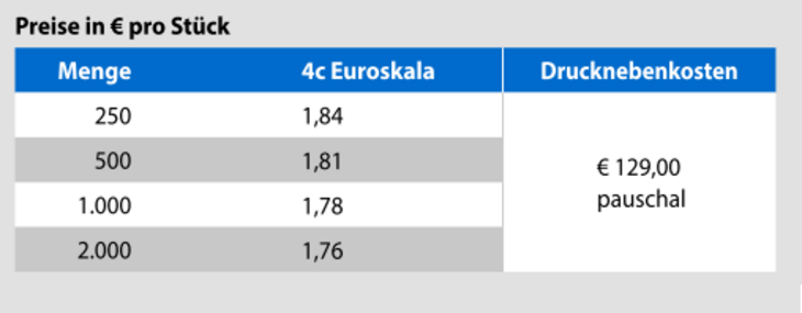 Preisliste Twin Tin Digitaldruck mit Logo Details
