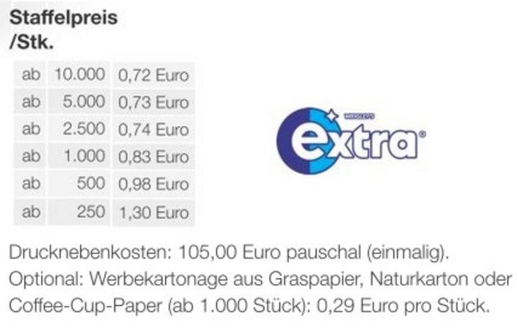 Preisliste Werbe-Klappkarte Wrigley´s Extra Professional White Kaugummi mit Logo Details