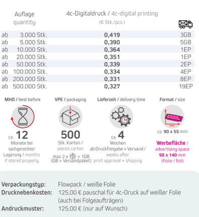 Preisliste Butter Herzen Keks im Flowpack 7g bedruckt mit Logo Details