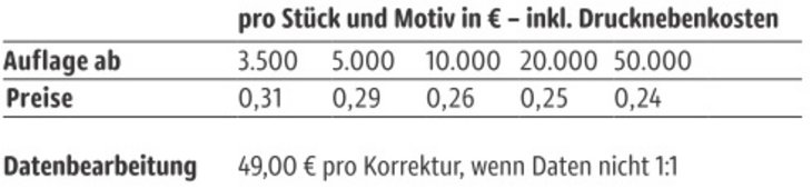 Preisliste Kaffee Keks im Flowpack mit Logo