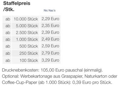 Perfekt für die Logistik! Individuell bedruckbares Präsent als „LKW“ mit vielen Gestaltungsmöglichkeiten. Wählen Sie aus verschiedenen Varianten feinster Markenfüllungen. Produktdetails: Individuelle Präsentverpackung aus hochwertiger Kartonage mit süßer FüllungProduktdetails: Individuelle Präsentverpackung aus hochwertiger Kartonage mit süßer Füllung. Nachhaltigkeit: Für jede Bestellung mit uns wird ein Baum über GROW MY TREE gepflanzt. Wir verwenden FSC® zertifizierten Karton aus nachhaltiger Forstwirtschaft und anderen kontrollierten Quellen.LKW: ca. 132 x 61 x 48 mm, Bedruckung/Motive: 4-farbiger Druck auf grafischem Premium-Karton (FSC ® -zertifiziert). Optional auf Graspapier, Naturkarton oder Coffee-Cup-Paper.Inhalt : 1 Stück Lorenz Nic Nac´s (ca. 35g)Haltbarkeit: 3 MonateLieferzeit/Zubehör: Lieferung ca. 15 Arbeitstage nach Druckfreigabe.Gleich mitbestellen: Stabiler Einzelkarton für den Postversand an Ihre Kunden: 0,59 Euro pro Stück.Mindestbestellmenge: 100 Stück