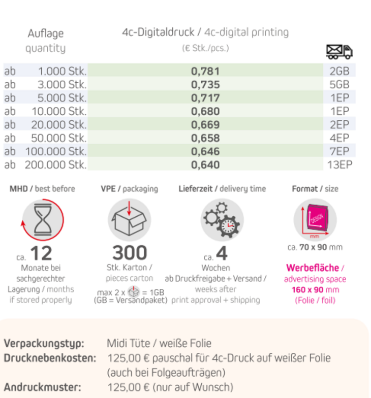 Verpackungstyp: Midi Tüte / weiße Folie
