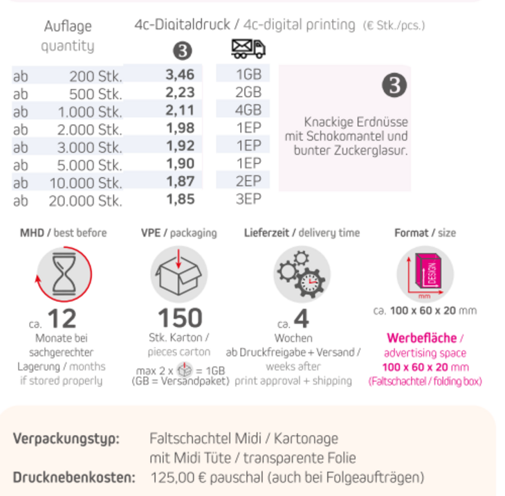 Preisliste Bunte Schoko-Erdnüsse 15g mit Logo Details