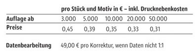 Cocktail-Mix aus Laugengebäck und Crackern in verschiedenen Motiven, gemischt in weißem Werbetütchen aus kompostierbaren Folien & Farben.Format/Inhalt:ca. 120 x 95 mm, ca. 10gVerpackung: 100 Stück / KartonLieferzeit:ca. 20 Arbeitstage nach DruckfreigabeHaltbarkeit: ca. 3 MonateMindestbestellmenge: 3.000 Stück