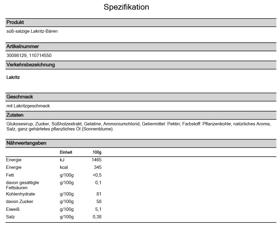 Preisliste Salzige Lakritz-Bärchen im Werbetütchen mit Logo Details