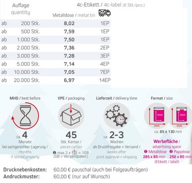 Haltbarkeit: 4 Monate bei sachgerechter Lagerung