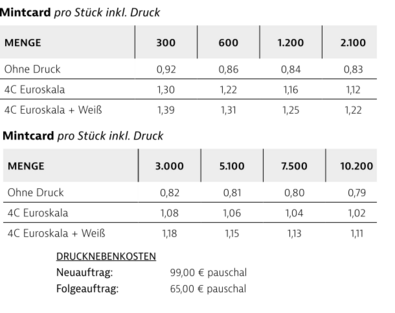 Preisliste MintCard mit Logo