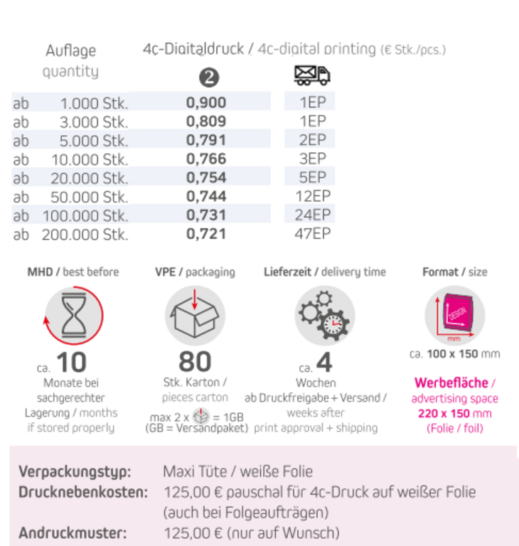 Verpackungstyp: Maxi-Tüte / weiße Folie