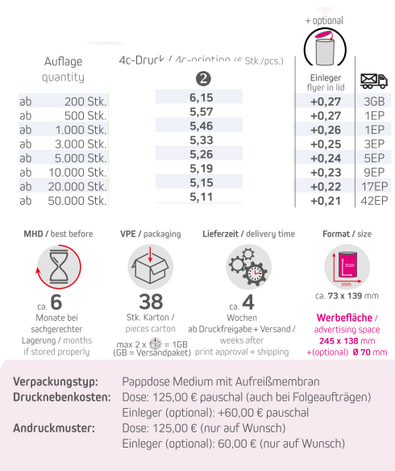 Produkt: Pappdose Medium mit Aufreißmembran