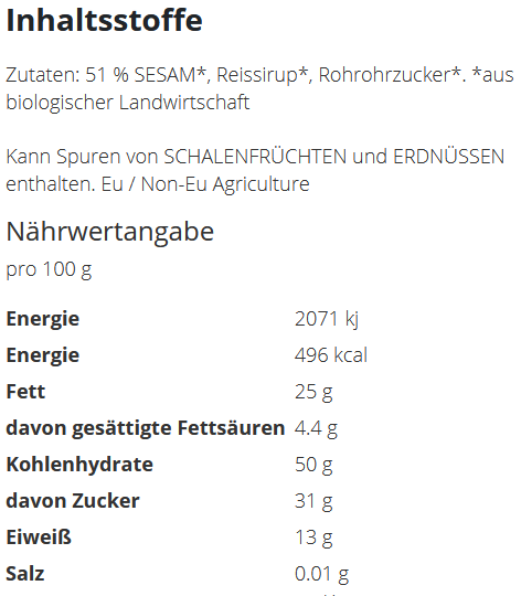 Preisliste BIO Krokant Riegel Sesam mit Logo Details