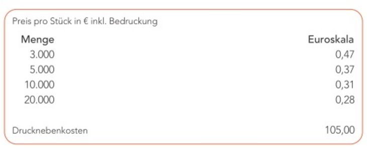 Preisliste Blockbeutel Tic-Tac mit Logo Details