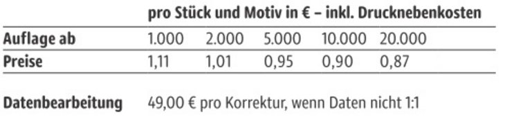 Preisliste 1er Ferrero Küsschen mit Logo Details
