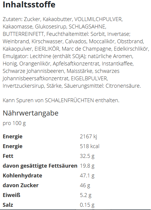 Ein Mix aus vier edlen, alkoholhaltigen Pralinen in Confiserie-Qualität wird von einer eleganten Holzbox umschlossen. Der individuelle Druck auf dem Deckel transportiert die Markenbotschaft auf besondere Weise. Auch ohne Alkohol bestellbar.Inhalt : Mix aus 4 köstlichen Pralinen / Trüffel (mit Alkohol) in Confiserie-QualitätFormat Holzbox : 94 x 94 x 37 mmVerpackungseinheit : 25 StückDruck: DirektdruckHaltbarkeit : 5 Monate bei sachgerechter LagerungLieferzeit : ca. 15 Arbeitstage nach DruckfreigabeMindestbestellmenge : 50 StückPralinen ohne Alkohol auf Anfrage!