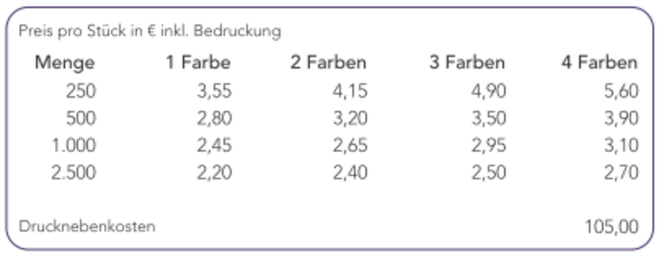 Format: 108 x 42 x 22 mmFarbe: gold, bedruckt im 1-4-farbigen SiebdruckInhalt: 1 MarsHaltbarkeit: 9 MonateLieferzeit: ca. 3 Wochen nach Korrekturfreigabe