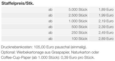 Zartschmelzender Genuss, verpackt mit Ihrer Marke! Zwei feine Lindt Lindor Pralinés in eleganter Verpackung – ein kleiner Genussmoment, der Eindruck hinterlässt. Individuell bedruckt mit Ihrem Logo, Motiv oder Slogan wird das Präsent zu einem hochwertigen Markenbotschafter und sorgt für nachhaltige Wertschätzung bei Kunden und Mitarbeitenden. Produktdetails: Edle Lindor Pralinés von Lindt, verpackt in einer individuellen Werbekartonage. Nachhaltigkeit: Für jede Bestellung mit uns wird ein Baum über GROW MY TREE gepflanzt. Wir verwenden FSC® zertifizierten Karton aus nachhaltiger Forstwirtschaft und anderen kontrollierten Quellen.Produkt: Edle Lindor Pralinés von Lindt, verpackt in einer individuellen WerbekartonageMaße: ca. 83 x 40 x 25 mm.Inhalt: 2 Lindor Pralinés (ca. 25 g). Geschmacksrichtungen bunt gemischt. Auf Wunsch auch sortenrein möglich.Haltbarkeit: ca. 6 MonateVerpackung: 120 Stück pro Karton, 6.480 Stück pro Palette.Bedruckung/Motive: 4-farbiger Druck auf grafischem Premium-Karton (FSC ® -zertifiziert). Optional auf Graspapier, Naturkarton oder Coffee-Cup-Paper.Nachhaltigkeit: Für jede Bestellung mit uns wird ein Baum über GROW MY TREE gepflanzt. Wir verwenden FSC® zertifizierten Karton aus nachhaltiger Forstwirtschaft und anderen kontrollierten Quellen.Lieferzeit: ca. 15 Arbeitstage nach Druckfreigabe.Mindestbestellmenge: 100 Stück