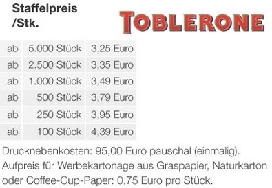 Preisliste 3D Präsent Haus Toblerone Minis Details