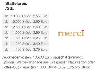 Preisliste 3D Präsent Schiff mit Merci Petits mit Logo Details