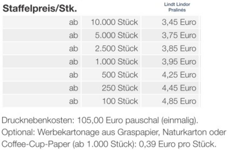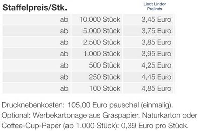 Preisliste Kissenverpackung Creative Lindt Lindor Pralinés mit Logo