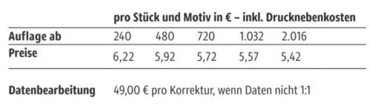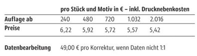 Preisliste Maxi Promo Pack Celebrations mit Logo Details