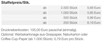 Preisliste Füllung MILKA VON HERZEN mit Logo Details