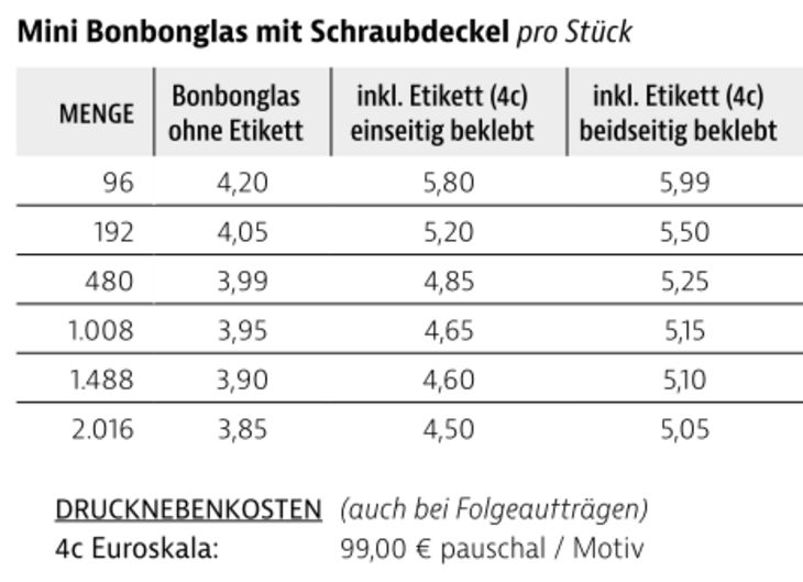 Preisliste Mini Bonbonglas mit Logo