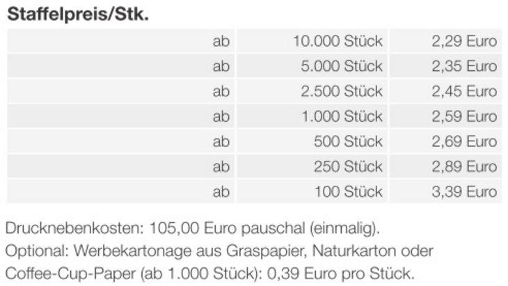 Preisliste Ritter SPORT Mini 4er mit Logo
