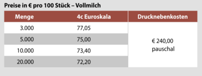 Preisliste Schokolade 40 g mit Logo