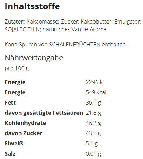 Preisliste Schokolade 40 g mit Logo Details