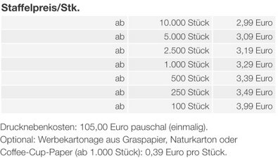 Faire Schokolade mit Suchtfaktor! 100 % rückverfolgbare Bohnen, Fairtrade®, kein Palmöl, FSC®-zertifiziertes Papier - das ist nachhaltiger Schokoladengenuss! Schokofans lieben diese leckere Schokolade. Produktdetails: Tony´s Schokolade verpackt in einem individuellen Werbeschuber. Für jede Bestellung mit uns wird ein Baum über GROW MY TREE gepflanzt. Wir verwenden FSC® zertifizierten Karton aus nachhaltiger Forstwirtschaft und anderen kontrollierten QuellenBedruckung/Material: 4-farbiger Druck auf grafischem Premium-Karton (FSC ® -zertifiziert). Optional auf Graspapier, Naturkarton oder Coffee-Cup-Paper.Inhalt: 1 Tafel Tony´s Schokolade (90g). Geschmacksrichtungen: Vollmilch, Zartbitter-Mandel Meersalz (vegan), Vollmilch Brezel Toffee, Vollmilch Karamell MeersalzHaltbarkeit: 6 Monate Format: ca. 130 x 70 x 14 mmLieferzeit: Lieferung ca. 10 - 15 Arbeitstage nach Druckfreigabe.Mindestbestellmenge: 100 Stück