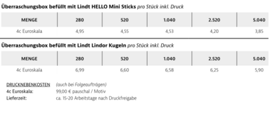 Preisliste Überraschungsbox mit eigenem Logo Details