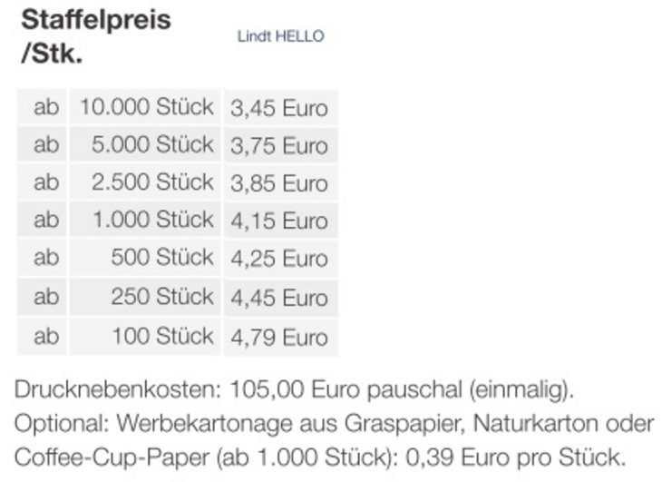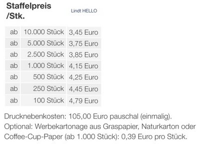 Preisliste 3D Präsent LKW mit Lindt HELLO Mini mit Logo