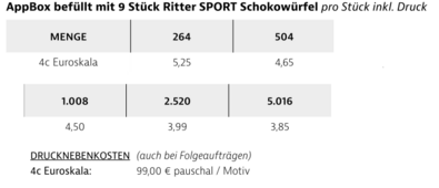 Preisliste Appbox Ritter Sport Schokowürfel mit Logo
