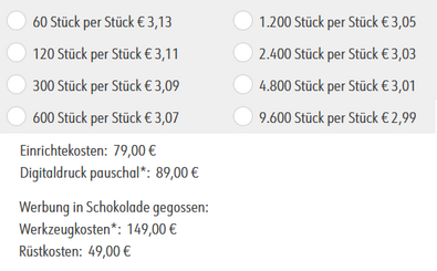 Preisliste Dekordose mit Schokoladentafel Sonderanfertigung 60mit Logo Details