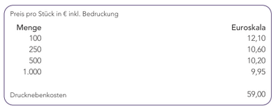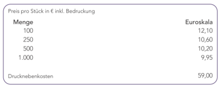 Preisliste Hashtag Schokolade mit Werbedruck Details
