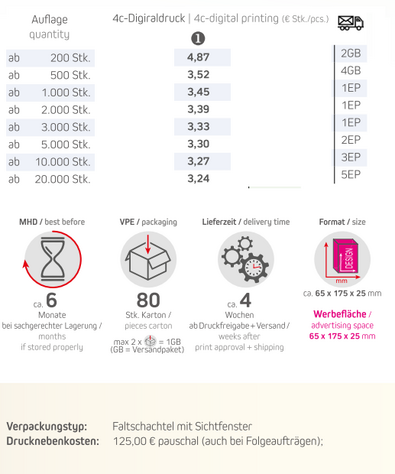 Inhalt: Schoko Ostereier ca. 25 g (6 Stück)Verpackungstyp: Faltschachtel mit SichtfensterFormat: ca. 65 x 175 x 25 mmWerbefläche: Türhänger komplett rundum ca. 65 x 175 x 25 mm (gemäß Standskizze)Lieferzeit: ca. 4 Wochen ab Druckfreigabe + VersandDruckart: 4c-DigitaldruckHaltbarkeit: ca. 6 Monate bei sachgerechter LagerungVPE: 80 Stk / KartonMindestmenge: 200 Stk.